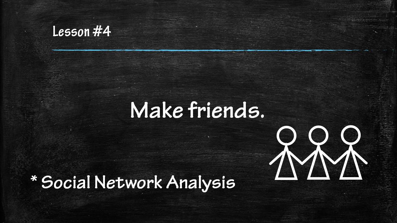 My mom was an elementary school teacher. She started out as a kindergarten music teacher. Of course she taught us to make friends. She taught us songs about it. One of the really cool skills that I’ve been working on acquiring during the past year is social network analysis. In a world where demonstrating the success of networks and the spread of your science is essential for both the evaluation of funding and securing the same for future projects, social network analysis is a powerful tool. I’ve also noticed that it’s not a skill that too many people around my university have. This makes it pretty valuable. Being able to do something that’s both needed and wanted puts you in a winning position.