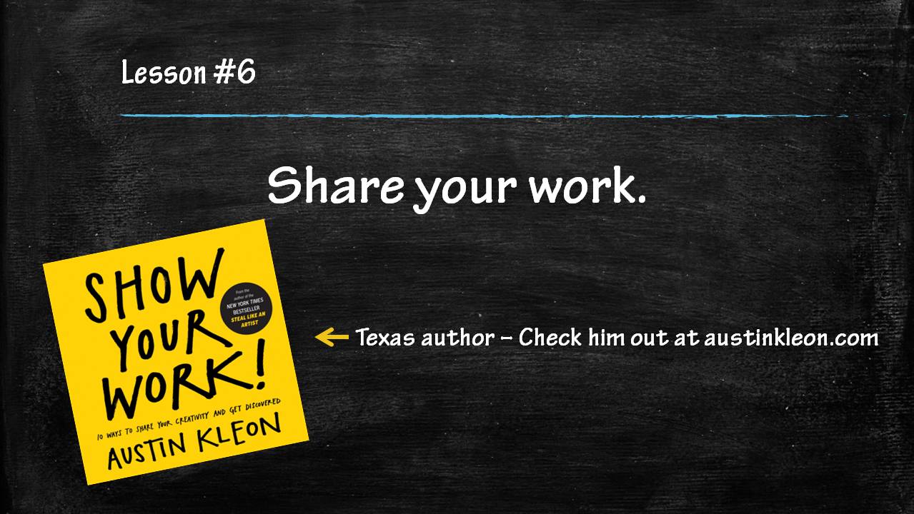 “Show your work! No one else is going to.” This is but one of the great lessons you can find in Austin Kleon’s latest book. He’s writing to artists, but it’s really a good lesson for librarians, too. Show and share what you know, what you do, and what you’ve done. We can no longer rely upon people simply finding all of the resources that the library has to offer. Our electronic resources are vast and often buried. Our professional services are stereotyped. It’s nobody else’s responsibility to get the message that we want people to know out. It’s our responsibility. Tell people what you have to offer, what the library has to offer. My mom entered her original pieces of needlework in competitions. She shared her skills with others by teaching and mentoring. Years before I came across this nice little book, I learned the same lesson from my mother’s example.