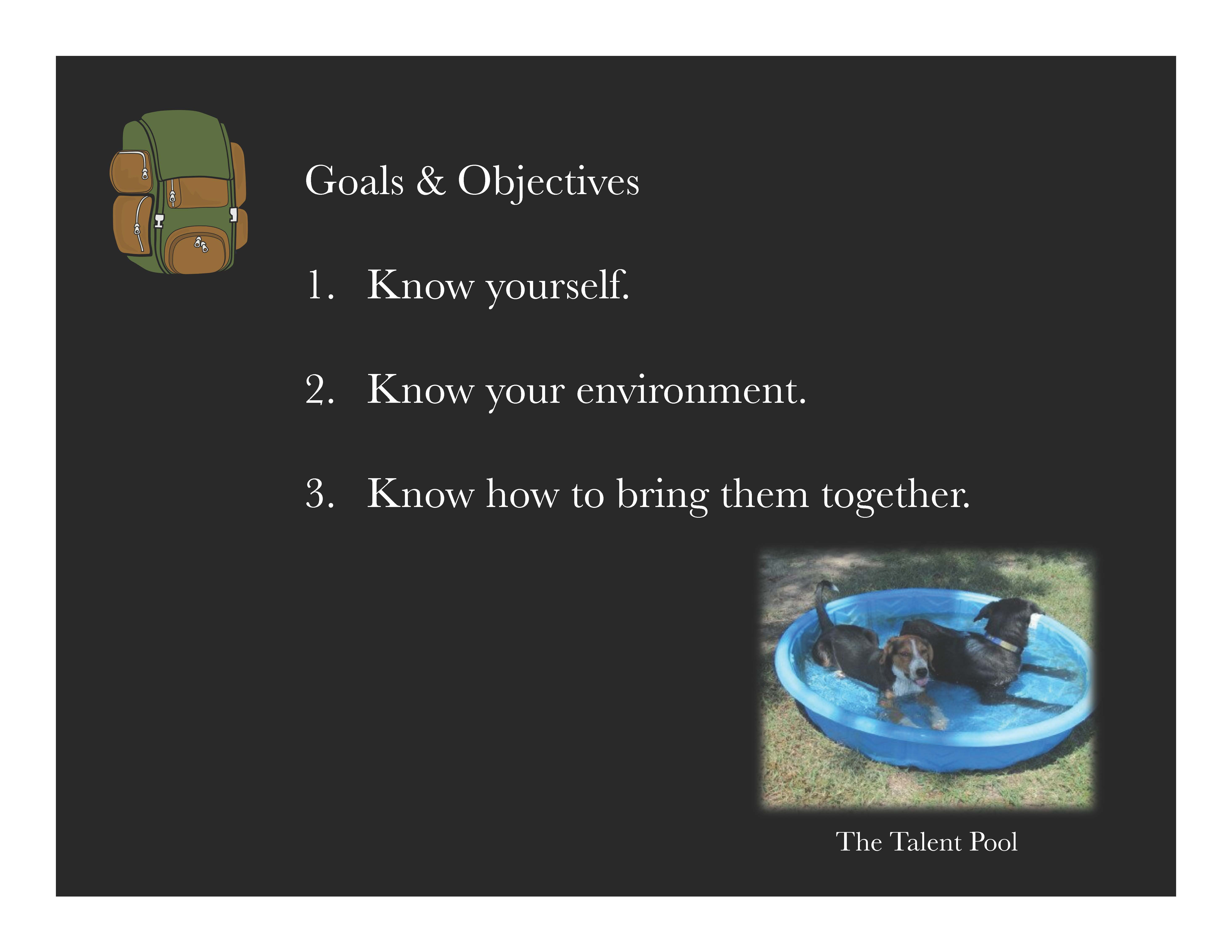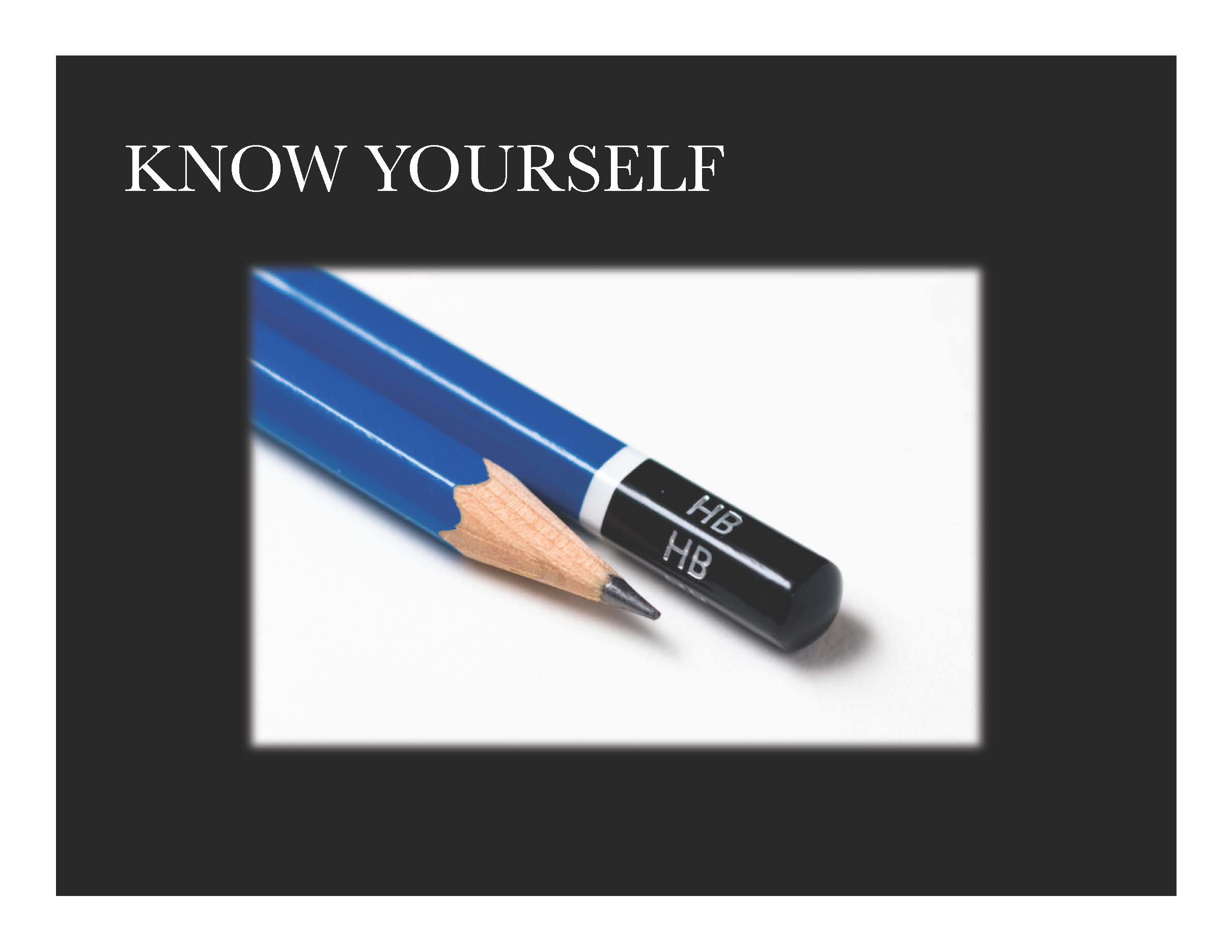 - Know yourself – what you do well, what you don’t do well, what you like to do, what you don’t like to do, etc.