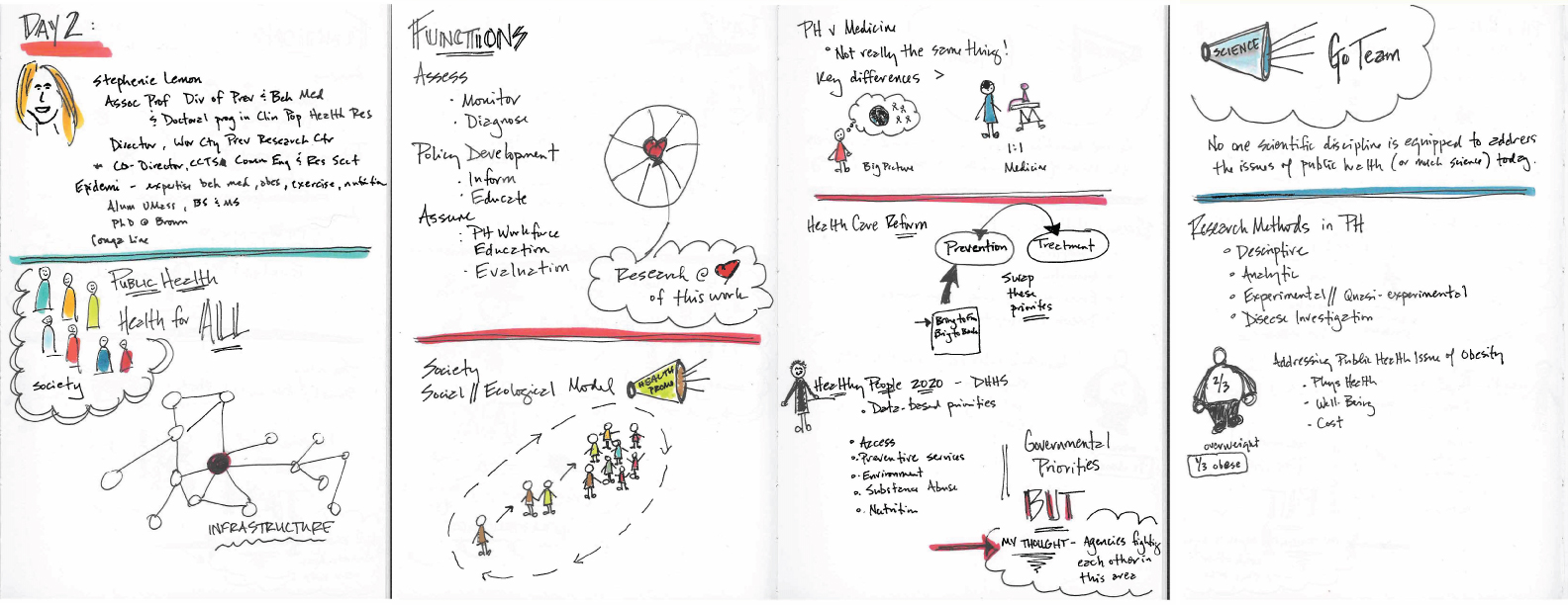 This year’s Camp was held at the University of Connecticut and we had sessions focusing on computer science, personalized medicine, evolutionary biology, toxicology (pharmaceutical sciences), and a capstone presentation that covered how to both talk about and engage the public in science, i.e. promoting science literacy and citizen science. I’ll not recap each session here, but I will share my sketchnotes for those who might want to get a peek at some of the terrific content shared. Enjoy!